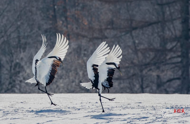 《灰冠鹤成双入对》